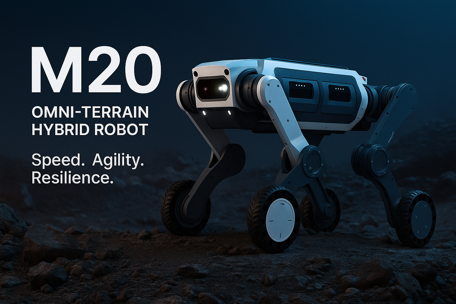 LYNX M20 adalah robot wheel-leg hybrid (roda + kaki) generasi terbaru dari Ezra Robotics. Dirancang khusus untuk medan sulit dan lingkungan berbahaya — serta tetap ringan, gesit, dan tangguh.